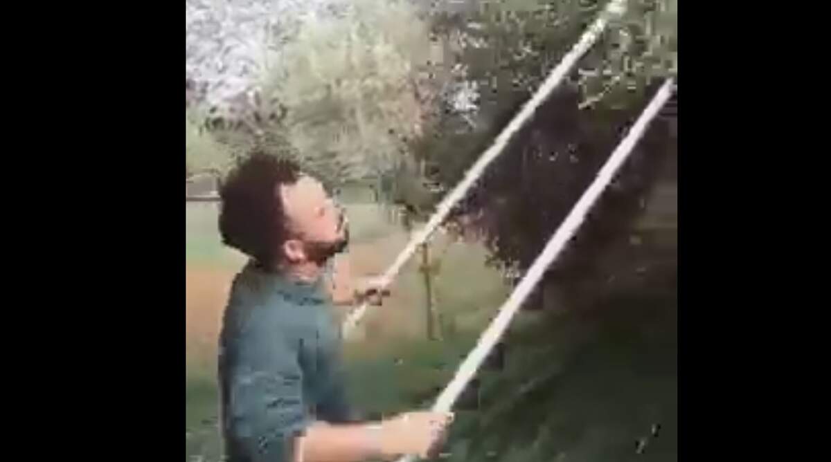 Στο βίντεο, το οποίο δημοσίευσε η σελίδα Κρήτη μου όμορφο νησί, ο άνδρας ραβδίζει, όταν του λένε ότιο το ελαιόλαδο έχει πάει στα 4,80 ευρώ, αμέσως ξεκινά και με τα δυο χέρια να ραβδίζει.