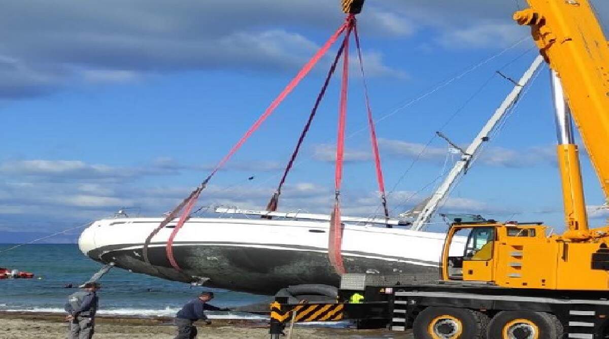 Στην απομάκρυνση του ιστιοφόρου που είχε εντοπιστεί στην θάλασσα της Αγίας Μαρίνας Χανίων την Τετάρτη 21 Δεκεμβρίου προχώρησαν ειδικά συνεργεία με την χρήση γερανού.