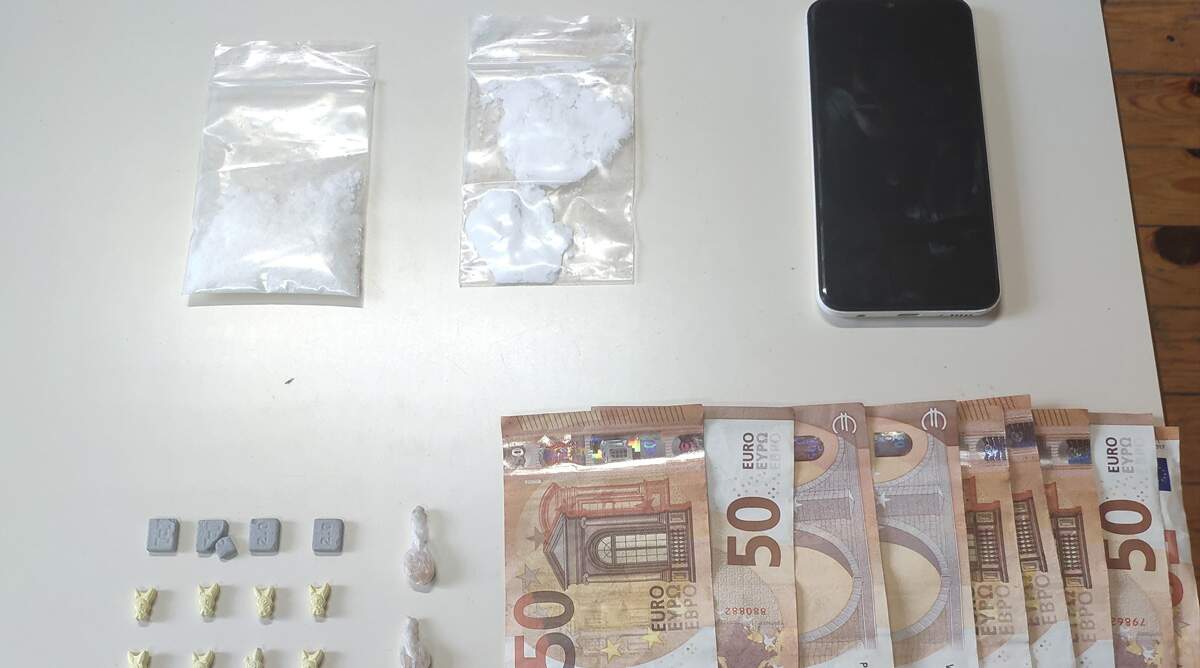 Κατά τη διάρκεια των ερευνών βρέθηκαν στην κατοχή του και κατασχέθηκαν συνολικά, 19,6 γραμμάρια κοκαΐνης, μικροποσότητα ναρκωτικής ουσίας M.D.M.A., ναρκωτικά δισκία χωρίς την απαιτούμενη από το νόμο ιατρική συνταγή, το χρηματικό ποσό των 450 ευρώ ως προερχόμενο από παράνομες δραστηριότητες και κινητό τηλέφωνο.