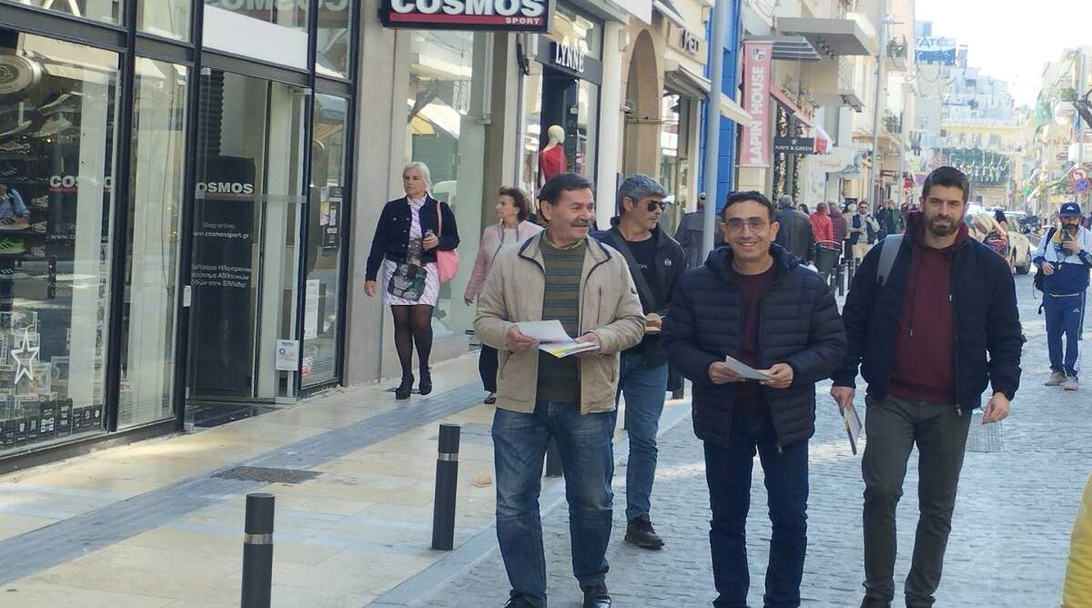 Περιοδεία κλιμακίου του ΚΚΕ πραγματοποιήθηκε την Παρασκευή 30 Δεκεμβρίου, στο κέντρο του Ηρακλείου με επικεφαλής τους Δημήτρη Βρύσαλη και Μιχάλη Κασσαπάκη, στελέχη του ΚΚΕ και Δημοτικοί Σύμβουλοι Ηρακλείου με τη Λαϊκή Συσπείρωση.