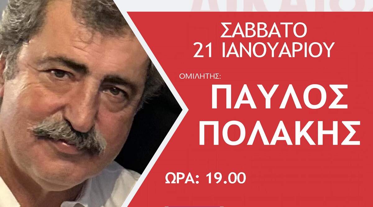 Ο πρώην Αναπληρωτής Υπουργός Υγείας, Βουλευτής Χανίων και νυν Τομεάρχης του τμήματος Διαφάνειας του ΣΥΡΙΖΑ-ΠΣ Παύλος Πολάκης θα μιλήσει σε ανοικτή Πολιτική Εκδήλωση το Σάββατο 21-01-2023 και ώρα 19:15 στην Αίθουσα Μελίνα Μερκούρη και θα αναλύσει τις 6 Εθνικές Προτεραιότητες και τις θέσεις του κόμματος ΣΥΡΙΖΑ-ΠΣ.