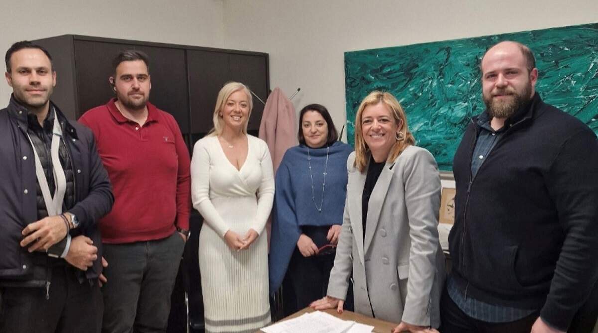 ο Γενικός Γραμματέας Σάββας Καθέρης, ο Ταμίας Ζαχαρίας Σηφάκης, η Υπεύθυνη Εξωστρέφειας Τζίνα Τσαντρίζου και η Προϊσταμένη του Τμήματος ΤΑΠ και Τελών Καθαριότητας και Φωτισμού του Δήμου Μαίρη Μπαρμπαγαδάκη.