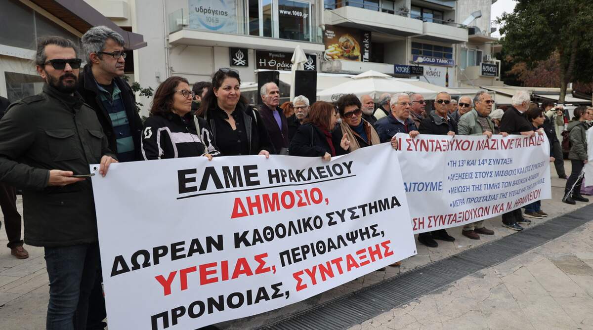 Σε εξέλιξη είναι στην πλατεία Ελευθερίας το παγκρήτιο πανυγειονομικό συλλαλητήριο στο Ηράκλειο, μετά από κάλεσμα του σωματείου εργαζομένων ΠΑΓΝΗ, το οποίο ζητά μαζικές προσλήψεις μόνιμου προσωπικού και «δωρεάν δημόσιο Σύστημα Υγείας αντάξιο των σύγχρονων αναγκών».: