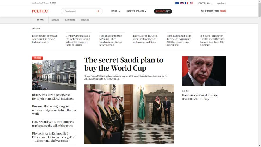 Αποκαλυπτικό ρεπορτάζ με τίτλο «Το μυστικό σχέδιο της Σαουδικής Αραβίας να αγοράσει το Παγκοσμιο Κύπελλο» φιλοξενεί η ιστοσελίδα Politico βάζοντας σε εξαιρετικά δύσκολη θέση τον Κυριάκο Μητσοτάκη και το Μαξίμου.