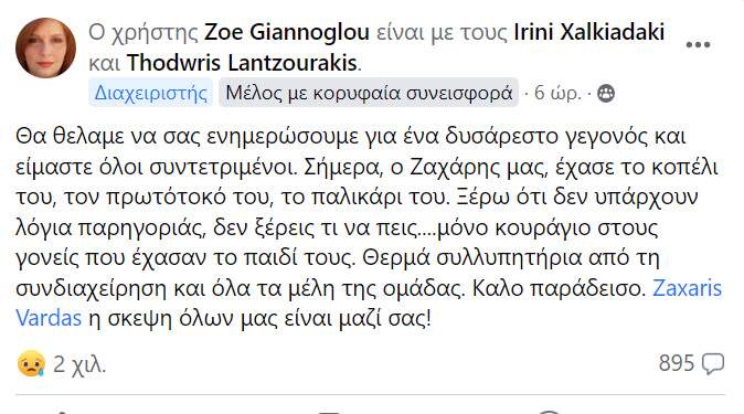 Στο πένθος έχει βυθιστεί η ομάδα των Μετεωκρητών, καθώς όπως έγινε γνωστό από τη σελίδα έφυγε ξαφνικά από τη ζωή ο γιος του ιδρυτή της ομάδας, Ζαχάρη Βάρδα.