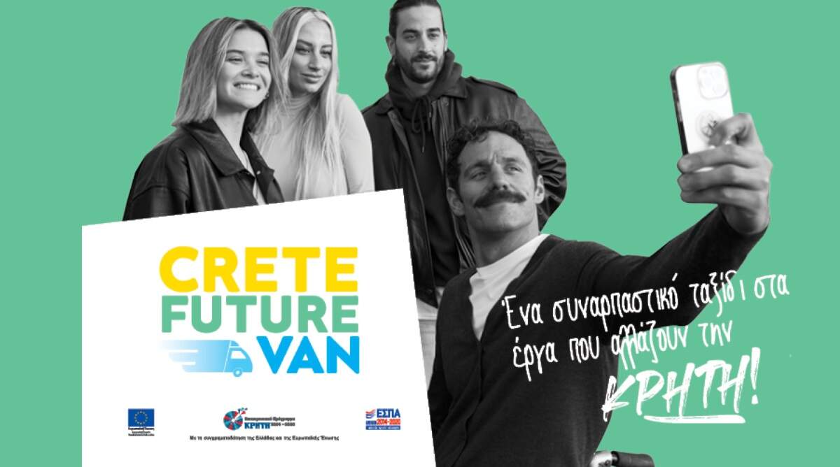 • θα προβληθεί το video του ταξιδιού, το οποίο καταγράφει όλες τις στάσεις του Crete Future Van στις Περιφερειακές Ενότητες Χανίων, Ρεθύμνου, Ηρακλείου και Λασιθίου. Ο «ξεναγός» Αντώνης Τσαπατάκης και οι συνταξιδιώτες του γνωρίζονται και συνομιλούν με τους υπεύθυνους των έργων ΕΣΠΑ, απολαμβάνοντας παράλληλα τη διαδρομή.