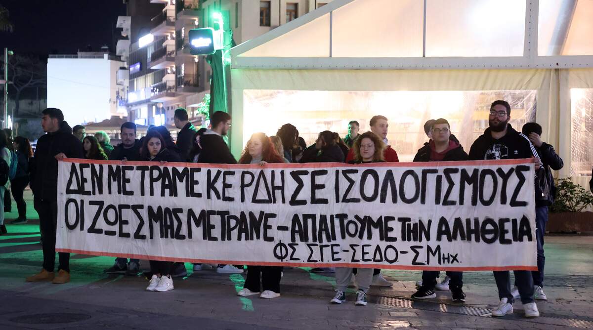 Οι πολίτες του Ηρακλείου με πανό και συνθήματα ζήτησαν να αποδοθούν ευθύνες για την τραγωδία των Τεμπών.
