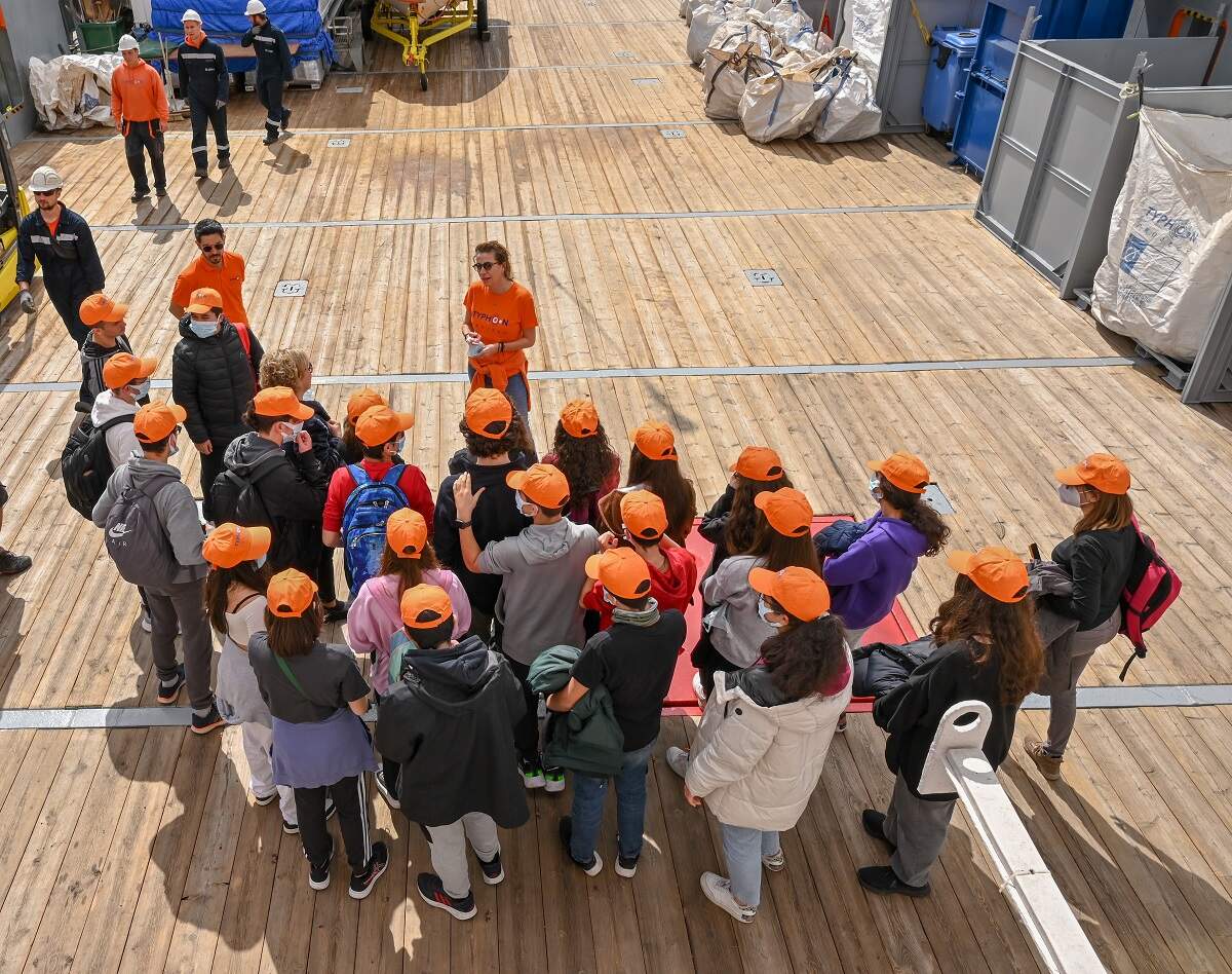 Έχοντας ως στόχο την ενεργό συμμετοχή των μαθητών και μαθητριών και την ευαισθητοποίησή τους στην προστασία του θαλάσσιου περιβάλλοντος, η εκπαιδευτική ομάδα του Ιδρύματος φιλοξένησε μαθητές και μαθήτριες από το Πρότυπο Γυμνάσιο Ηρακλείου και το 8ο Λύκειο Ηρακλείου στον «Τυφώνα». Με την επίσκεψή τους στο πλοίο, οι μαθητές είχαν την ευκαιρία να δουν από κοντά πώς είναι μία ημέρα δράσης. Ενημερώθηκαν για το “Typhoon Project” και ξεναγήθηκαν σε όλα τα στάδια της επεξεργασίας των απορριμμάτων που πραγματοποιούνται στο κατάστρωμα, μετά τη συλλογή τους από τις ακτές. Τον «Τυφώνα» επισκέφθηκαν, επίσης, στελέχη των Κέντρων Εκπαίδευσης για το Περιβάλλον και την Αειφορία των Αρχανών και της Ιεράπετρας, της Διεύθυνσης Δευτεροβάθμιας Εκπαίδευσης Ηρακλείου, καθώς και εκπαιδευτικοί από σχολεία του νομού Ηρακλείου αλλά και του Αγίου Νικολάου. Με την επίσκεψη απέκτησαν βιωματική εμπειρία του «Τυφώνα» και συζήτησαν με τα στελέχη του ιδέες για μελλοντικές συνεργασίες και εκπαιδευτικά προγράμματα.