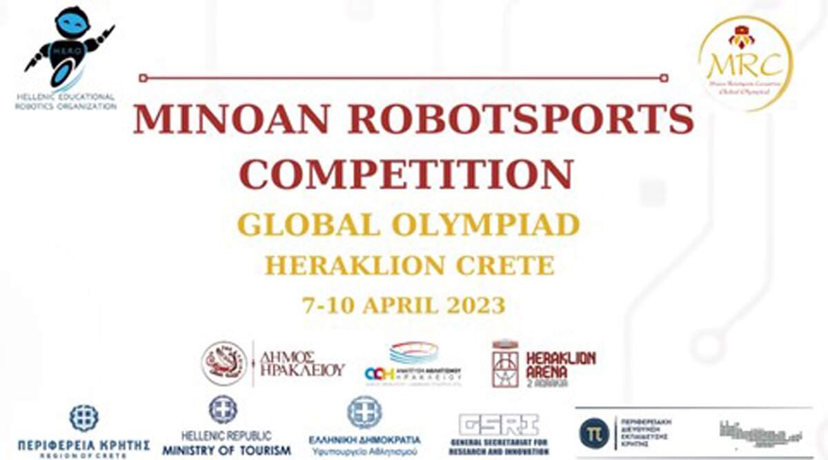 Συγκεκριμένα, ο Ελληνικός Οργανισμός Εκπαιδευτικής Ρομποτικής H.E.R.O. σε συνδιοργάνωση με τον Δήμο Ηρακλείου, με την αιγίδα του Υφυπουργείου Αθλητισμού, την υποστήριξη της Περιφέρειας Κρήτης, του Υπουργείου Τουρισμού, της Γενική Γραμματεία Έρευνας και Καινοτομίας, της Περιφερειακής Διεύθυνσης Εκπαίδευσης Κρήτης και του ΕΛΜΕΠΑ, πραγματοποιεί από 07 – 10 Απριλίου 2023 το MINOAN ROBOT SPORTS COMPETITION GLOBAL OLYMPIAD με περισσότερους από 2.000 διαγωνιζόμενους από 31 χώρες του κόσμου!