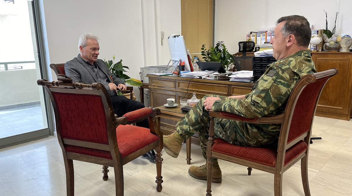 Με τον νέο Διοικητή της Σχολής Εφέδρων Αξιωματικών Πεζικού, ταξίαρχο Αντώνιο Πράγια συναντήθηκε σήμερα στα γραφεία της Αποκεντρωμένης Διοίκησης Κρήτης στο Ηράκλειο η Γραμματέας Μαρία Κοζυράκη.