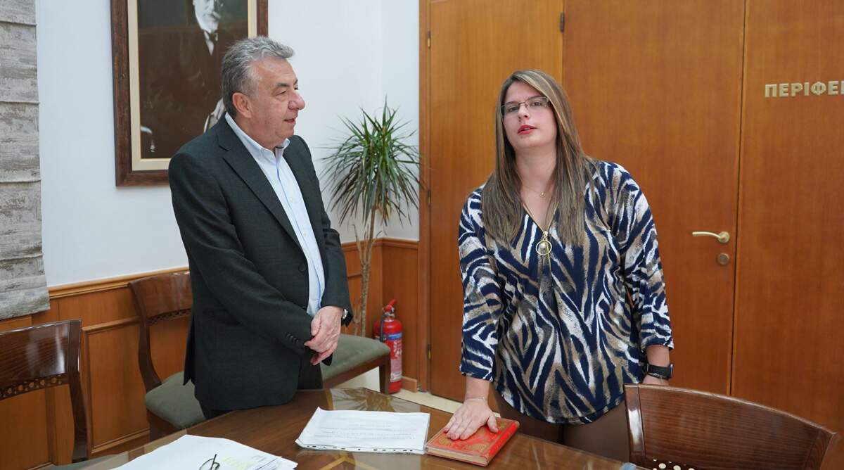 Ο Περιφερειάρχης Κρήτης ευχήθηκε στη νέα υπάλληλο καλή επιτυχία στα καθήκοντα της και καλή σταδιοδρομία στη δημόσια διοίκηση.
