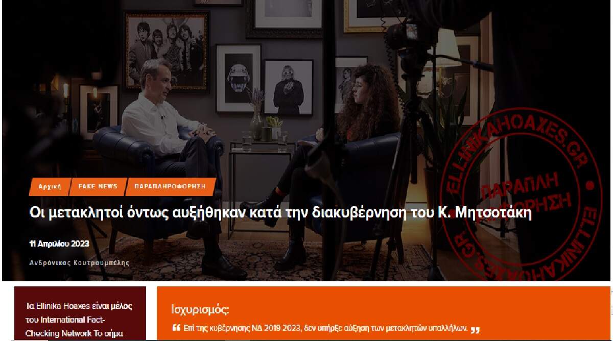 Αδειάζουν τον Κυριάκο Μητσοτάκη με δημοσίευμα τους τα Ellinika Hoaxes καταρρίπτοντας τα λεγόμενα του πρωθυπουργού στην συνέντευξη του με την youtuber Νεγέλη Μεγκ, όπου μεταξύ άλλων ανέφερε ότι δεν έχει αυξηθεί ο αριθμός των μετακλητών.