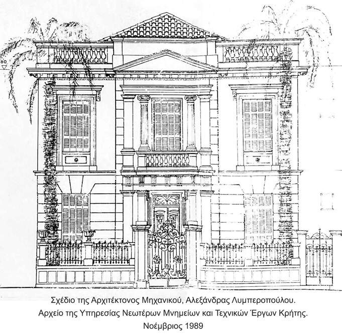 «….αξιόλογο νεοκλασικό κτήριο με ενδιαφέροντα επιμέρους μορφολογικά στοιχεία, όπως π.χ. τα πλαίσια των ανοιγμάτων που φέρουν γείσα και γεισίποδες, οι ποδιές των παραθύρων που είναι διακοσμημένες με ρόδακα, η τύπου Art Nouveau σιδεριά της πόρτας εισόδου και η οδοντωτή ταινία του θριγκού που διατρέχει την όψη. Ιδιαίτερο ενδιαφέρον παρουσιάζει η διαμόρφωση του μεσαίου τμήματος της κύριας όψης, όπου στο ισόγειο και στον όροφο σχηματίζεται επιστήλιο με δωρικές και ιωνικές κολόνες αντίστοιχα».