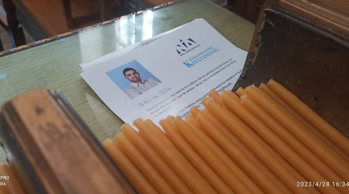 Ούτε ιερό, ούτε όσιο: Σε εκκλησία του Ηρακλείου, μαζί με τα κεριά δίνουν και το φυλλάδιο υποψηφίου της ΝΔ!