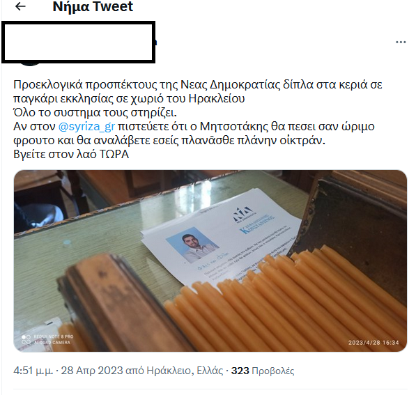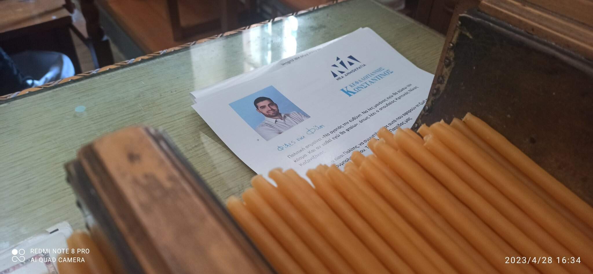 Η εικόνα είναι αδιάψευστη απόδειξη: σε εκκλησία του Ηρακλείου, μαζί με τα κεριά δίνουν και το φυλλάδιο υποψηφίου της ΝΔ!