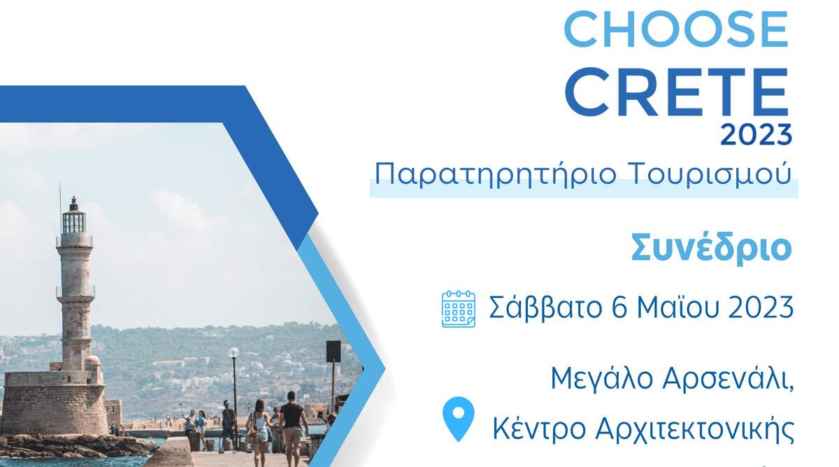 Το Choose Crete, υπό την Αιγίδα του Υπουργείου Τουρισμού, του ΕΟΤ και με την υποστήριξη της Περιφέρειας Κρήτης, θα πραγματοποιηθεί το Σάββατο 6 Μαΐου στις 10:30 π.μ. στο Μεγάλο Αρσενάλι, Κέντρο Αρχιτεκτονικής Μεσογείου στην πόλη των Χανίων, με θέμα “Hospitality in Crete: Extending the Tourist season | Over tourism and Sustainability”.