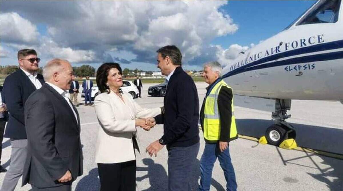 Όπως φαίνεται και στις φωτογραφίες, ο Κυριάκος Μητσοτάκης με το κρατικό αεροπλάνο επέλεξε να πάει και στη σημερινή (4/5) προεκλογική επίσκεψη στην Κεφαλλονιά.