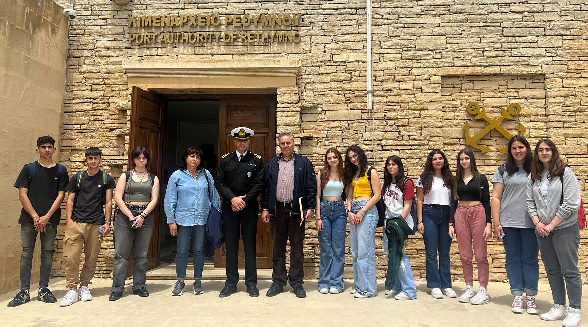 Ομάδα μαθητών του 2ου Γ.Ε.Λ μαζί με τους καθηγητές τους κ.κ. Σκαλίδη Αικατερίνη και Τσουρδαλάκη Αντώνη επισκέφθηκαν την Τρίτη 9-5-23 το Διαδημοτικό Λιμενικό Ταμείο και το Λιμεναρχείο Ρεθύμνου, φορείς που διαχειρίζονται και εποπτεύουν την χερσαία και θαλάσσια ζώνη των λιμένων του νομού μας και ενημερωθήκαν για το βαρυσήμαντο, πολύπλευρο έργο που επιτελούν τόσο στην ανάπτυξη του τόπου, όσο και στην εδραίωση του αισθήματος ασφάλειας.