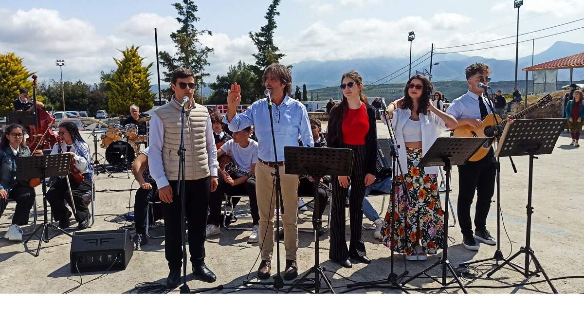 Δύο χιλιάδες περίπου μαθητές Γυμνασίων και Λυκείων του Ν. Ηρακλείου τραγούδησαν και χόρεψαν ύμνους-τραγούδια του Μίκη Θεοδωράκη στην επιτυχημένη εκδήλωση της Περιφέρειας Κρήτης που πραγματοποιήθηκε σήμερα στο Αρκαλοχώρι όπου όλοι χειροκρότησαν θερμά τον καταξιωμένο καλλιτέχνη Βασίλη Λέκκα την ορχήστρα του μουσικού σχολείου και τις μαθητικές χορωδίες.