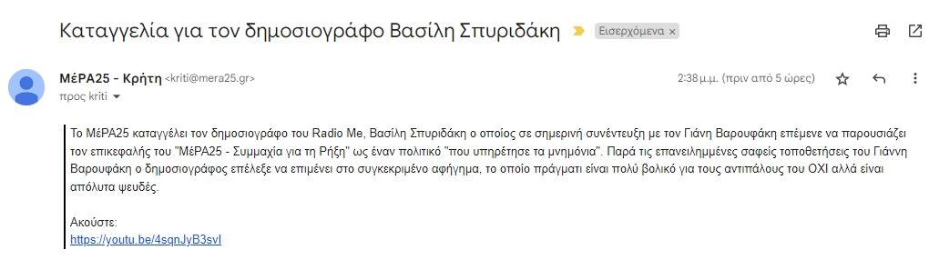 Ολόκληρη η επιστολή της ΕΦΣΥΝ για την καταγγελία σε βάρος του ανταποκριτή της στην Κρήτη: