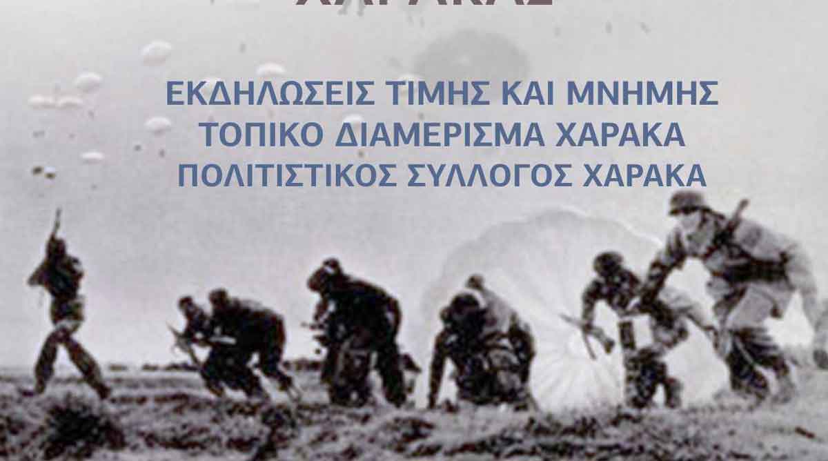 Ο πολιτιστικός σύλλογος Χάρακα στο πλαίσιο εορτασμού της 82ης επετείου της Μάχης της Κρήτης πραγματοποιεί εκδήλωση στο μνημείο των ηρώων την Κυριακή  28 Μάϊου στις 10 το πρωί.