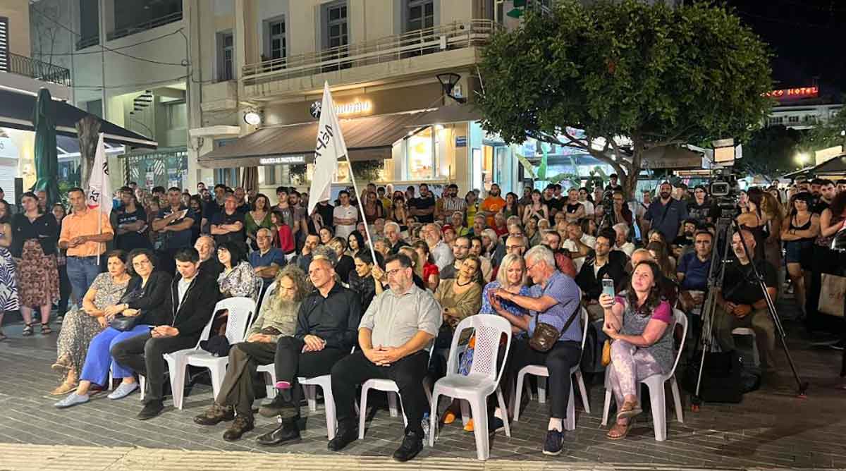 Στο Ηράκλειο πραγματοποιήθηκε προεκλογική εκδήλωση του ΜέΡΑ25 – Συμμαχία για τη Ρήξη παρουσία του Επικεφαλής, Γιάνη Βαρουφάκη και του υποψηφίου στην τελευταία θέση του ψηφοδελτίου Επικρατείας, Ψαραντώνη.