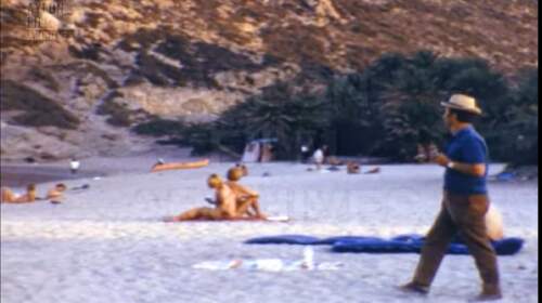 Κρήτη 1973. Η παραλία στο Βάι Βουβό φιλμ 8mm. Αρχείο Dr. Γ. Χατζηδάκη. Βρισκόμαστε στην αμμώδη παραλία Βάι, στο νομό Λασιθίου, ανατολικά της Κρήτης. Η παραλία Βάι περιβάλλεται από ένα δάσος φοινικόδεντρων, έκτασης περίπου 250 στρεμμάτων. Πλάνα των εντυπωσιακών κορυφών τους μας δίνει ο κινηματογραφιστής. Μια παρέα τεσσάρων αντρών συζητούν πλάι στο κύμα φορώντας τα μαγιό τους. Δίπλα τους μια βαρκούλα…