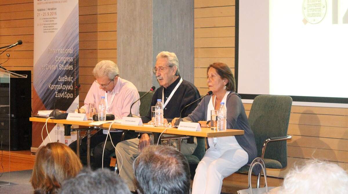 Ο Γρηγόρης Σηφάκης στην Καταληκτήρια Συνεδρίαση του 12ου Διεθνούς Κρητολογικού Συνεδρίου (Ηράκλειο, 21-25/9/2016), ανάμεσα στον Αλέξη Καλοκαιρινό και τη Λένα Τζεδάκη-Αποστολάκη
