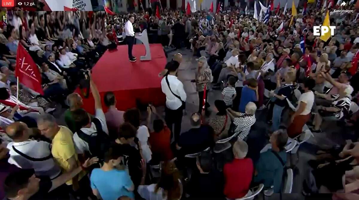 Ακολούθως περιέγραψε το διακύβευμα της εκλογικής αναμέτρησης της Κυριακής: «Οι εκλογές της επόμενης Κυριακής δεν είναι ο δεύτερος γύρος μιας εκλογικής αναμέτρησης. Είναι μια καινούργια εκλογική αναμέτρηση με το σύστημα της ενισχυμένης αναλογικής. Με μια απειλητική Δεξιά που επιδιώκει να γίνει καθεστώς. Όσοι προεξοφλούν το αποτέλεσμα καλά θα κάνουν να μη βιάζονται».