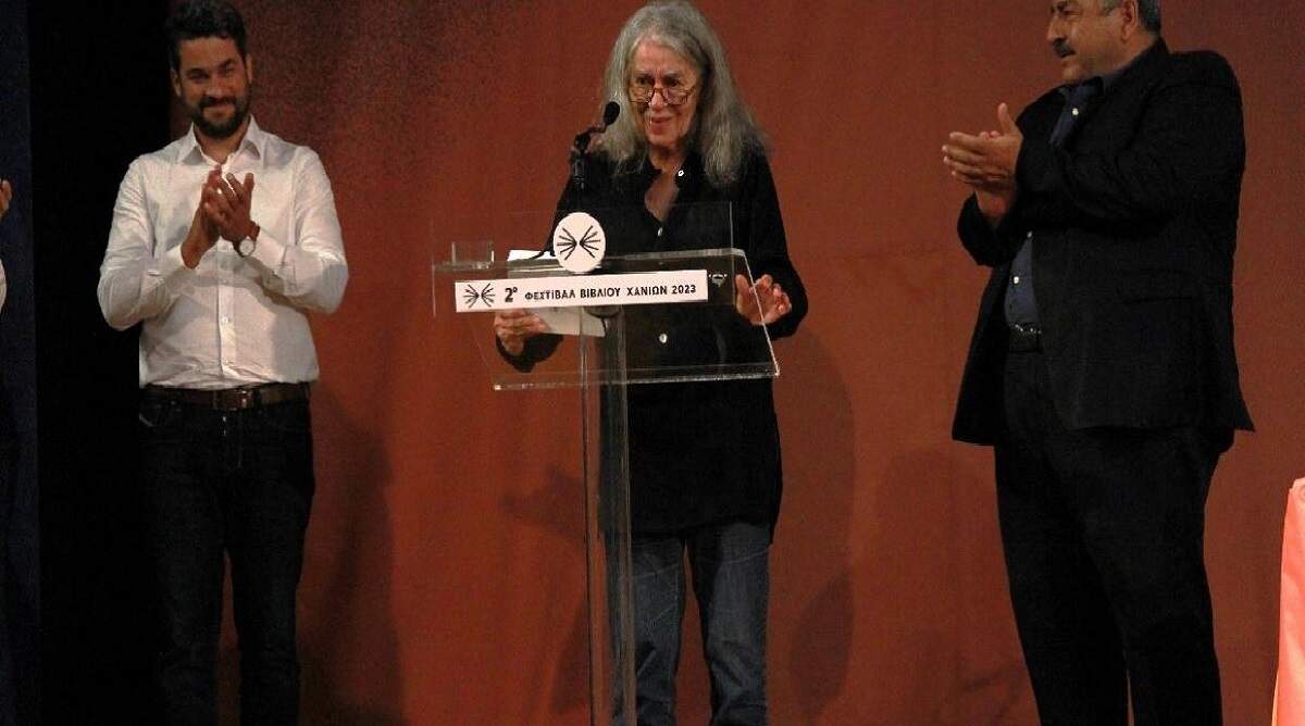 Η συγγραφέας Ιωάννα Καρυστιάνη με τα άσπρα μαλλιά και τη σοφία που εμπεριέχει η σκέψη της, τιμήθηκε  στην γενέτειρά της από το φεστιβάλ Βιβλίου Χανίων για την προσφορά της στα γράμματα και τον πολιτισμό. Και αυτή με τη σεμνότητα που ενδύεται πάντα – λες και κόλλησε στο δέρμα της, χωρίς χρονοκαθυστέρηση, πρόσφερε το βραβείο στο Α’ Γυμνάσιο της πόλης, το σχολείο που αποφοίτησε, στις συμμαθήτριες της που ήταν παρούσες στο θέατρο Μίκης Θεοδωράκης και στους δασκάλους της που της φώτισαν από πολύ νωρίς τον δρόμο των βιβλίων, όπως είπε.