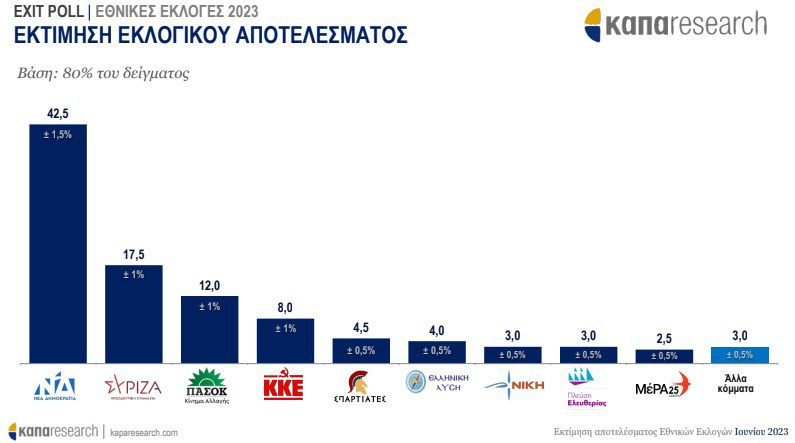 Νέα Δημοκρατία: 42,5% (απόκλιση 1,5%)
