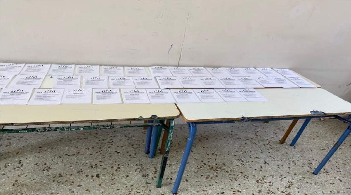 Ετσι οι ψηφοφόροι μπαίνοντας στο εκλογικό τμήμα για να ψηφίσουν έβλεπαν πάνω στο θρανίο μόνο το ψηφοδέλτιο της ΝΔ…