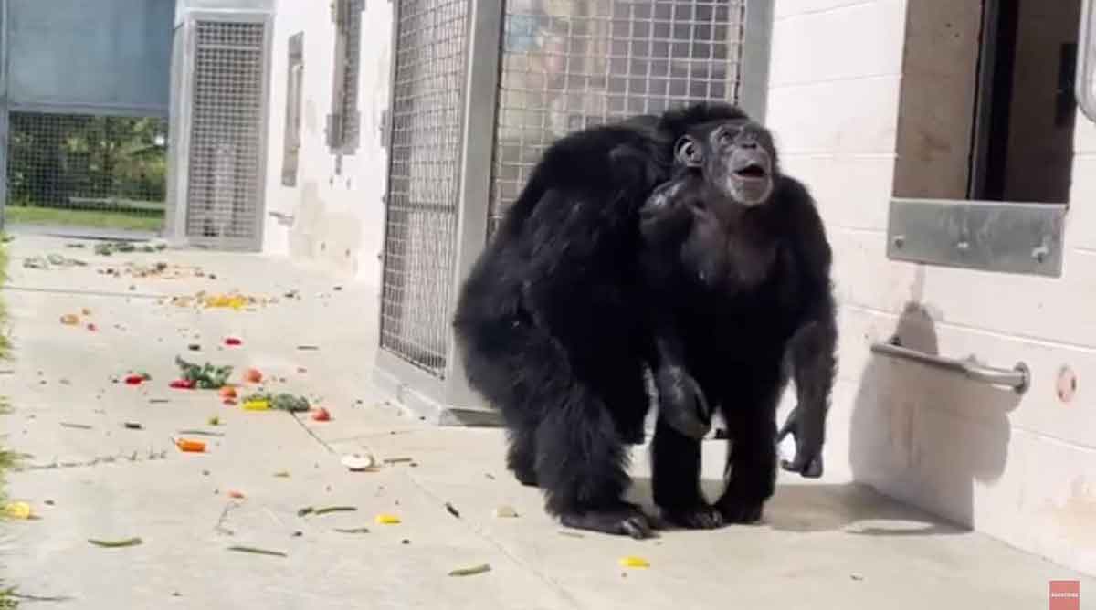 Το βίντεο καταγράφει την πρώτη φορά που η Βανίλα βλέπει τον ουρανό κατά την άφιξή της στο καταφύγιο Save the Chimps, στο Fort Pierce της Φλόριντα.