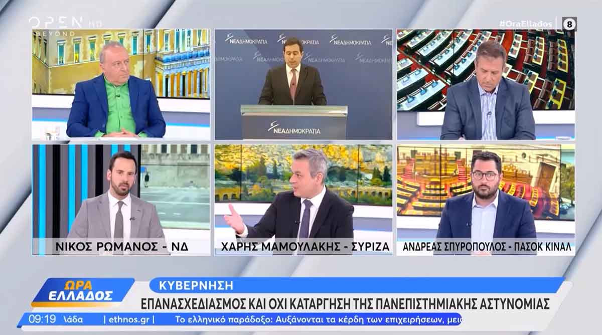 Το «επιτελικό μπάχαλο» με την πανεπιστημιακή αστυνομία, τις εξελίξεις στον ΣΥΡΙΖΑ Προοδευτική Συμμαχία και τις δηλώσεις του Πρωθυπουργού Κ. Μητσοτάκη για τη διαπραγμάτευση με την Τουρκία, σχολίασε ο Βουλευτής Ηρακλείου του ΣΥΡΙΖΑ ΠΣ Χάρης Μαμουλάκης μιλώντας στο OPEN και την εκπομπή «Ώρα Ελλάδος» με τον Δημήτρη Καμπουράκη και τον Παναγιώτη Στάθη.