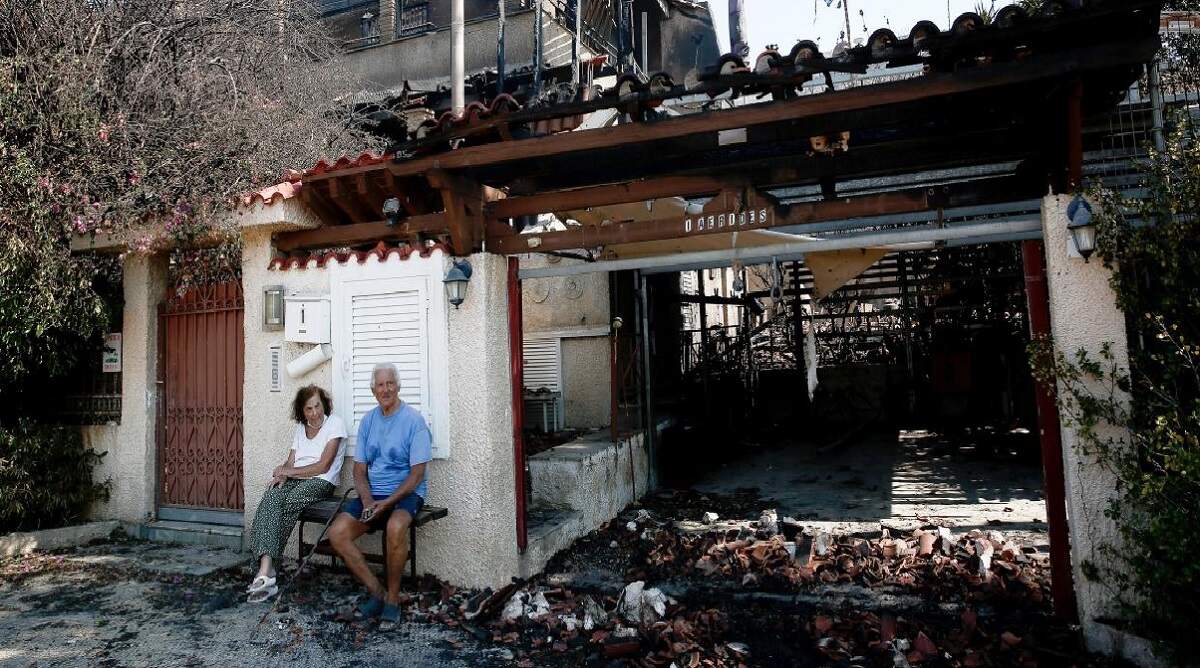 Ενδεικτικές της καταστροφής είναι οι φωτογραφίες ζευγαριού που τράβηξε ο Γιάννης Κολεσίδης. Ο Γιώργος Νικολάου, 86 χρονών και η σύζυγός του Άννα 89 χρονών στέκονται έξω από το καμένο σπίτι τους, στο Λαγονήσι.