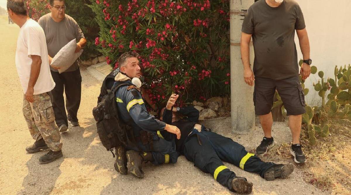 Λιποθύμησε από την εξάντληση και την αποπνικτική ατμόσφαιρα άνδρας της πυροσβεστικής που επιχειρούσε στη Νέα Πέραμο.