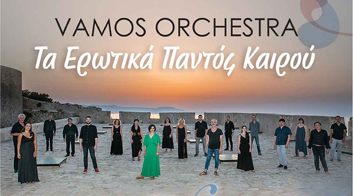 Στο πλαίσιο του «Φεστιβάλ Κρήτης» της Περιφέρειας Κρήτης που οργανώνει για τρίτη χρονιά, με την αιγίδα υπουργείου Πολιτισμού, παρουσιάζει το Μουσικό Σύνολο Vamos Orchestra και τη συναυλία με τίτλο «Τα Ερωτικά Παντός Καιρού». Οι συναυλίες θα γίνουν την Παρασκευή 21 Ιουλίου στο παλαιό δημοτικό σχολείο Αρχανών και τη Δευτέρα 24 Ιουλίου στο ενετικό φρούριο Καζάρμα στη Σητεία με ώρα έναρξης στις 9 το βράδυ.