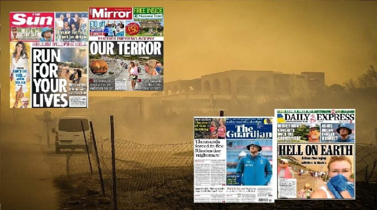 Χιλιάδες αναγκάστηκαν να εγκαταλείψουν τον εφιάλτη πυρκαγιάς στη Ρόδο, γράφει ο Guardian.