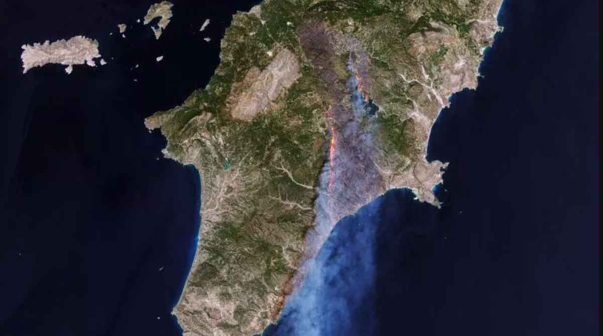 Ο πρώτος δορυφορικός απολογισμός για την καταστροφή που έχει υποστεί το περιβάλλον του νησιού από τη φωτιά.