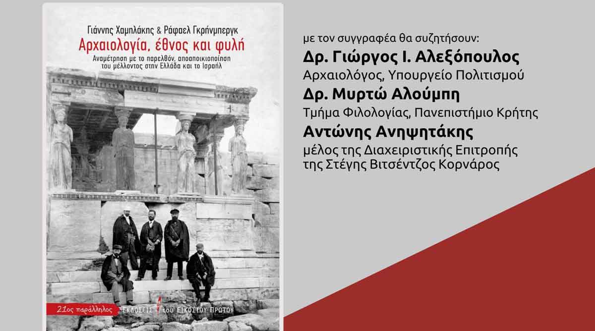 Παρουσιάζεται το βιβλίο “Αρχαιολογία, έθνος και φυλή. Αναμέτρηση με το παρελθόν, αποαποικιοποίηση του μέλλοντος στην Ελλάδα και το Ισραήλ” των Γιάννη Χαμηλάκη & Ράφαελ Γκρήνμπεργκ, στις 4 Αυγούστου 2023, στις 20.30, στον Δημοτικό Κήπο Σητείας.
