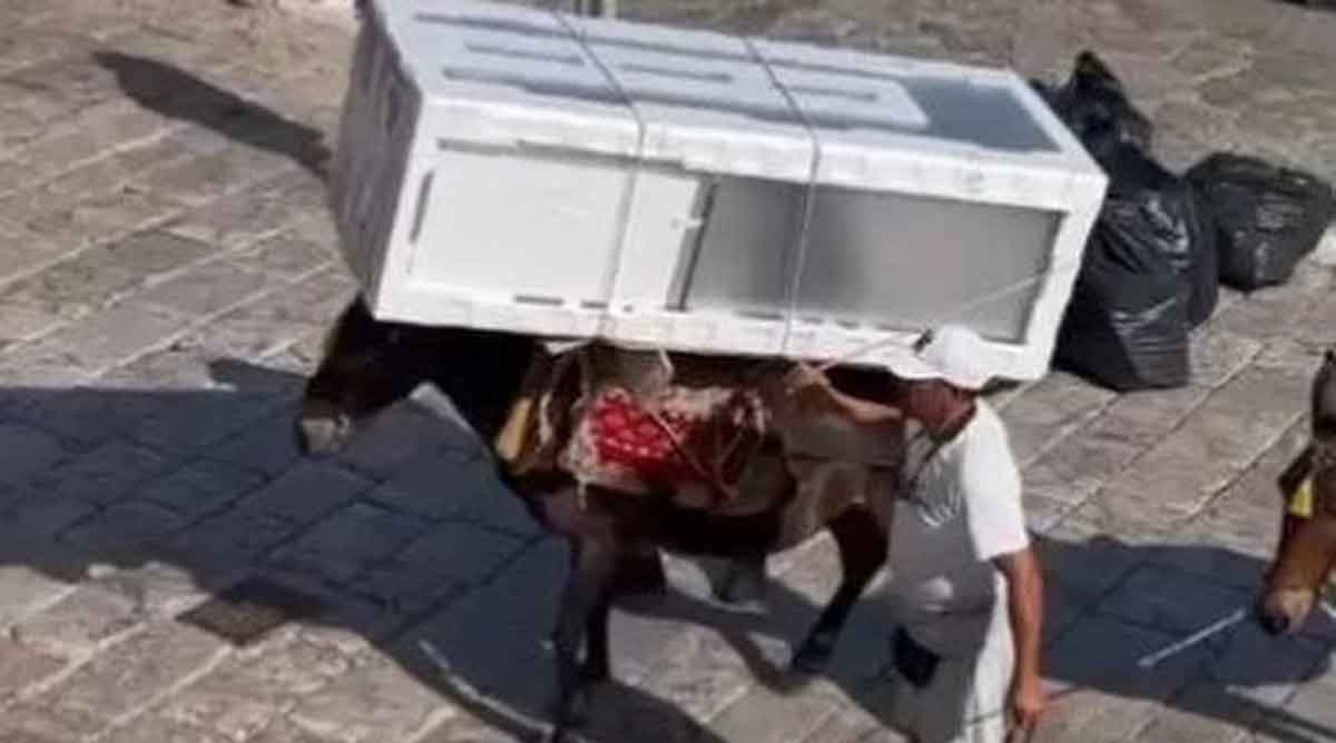 Γαϊδουράκια και άλογα φορτωμένα, παραπατάνε από το βάρος του φορτίου εν μέσω καύσωνα, την ώρα που η ταλαιπωρία των τετράποδων αναδεικνύεται σε τουριστική ατραξιόν.