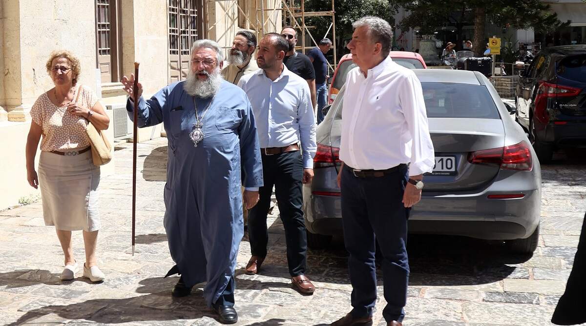 Τη χρηματοδότηση του έργου αναστήλωσης και αποκατάστασης από τις φθορές του χρόνου και τους σεισμούς του εμβληματικού Μητροπολιτικού ναού του Αγίου Μηνά-πολιούχου του Ηρακλείου, ανακοίνωσε σήμερα στον Αρχιεπίσκοπο Κρήτης κ.κ. Ευγένιο και στο ενοριακό συμβούλιο του Αγίου Μηνά ο Περιφερειάρχης Κρήτης Σταύρος Αρναουτάκης. Όπως ανέφερε ο Περιφερειάρχης κατά την επίσκεψή του στην Αρχιεπισκοπή παρόντος και του Εντεταλμένου συμβούλου Πολιτισμού Κώστα Φασουλάκη, η αποκατάσταση θα γίνει μετά την δρομολογούμενη ήδη υπογραφή προγραμματικής σύμβασης μεταξύ Υπουργείου Πολιτισμού-Περιφέρειας Κρήτης και Αρχιεπισκοπής Κρήτης ενώ έγινε επικοινωνία με την Υπουργό Πολιτισμού Λίνα Μενδώνη για τον συντονισμό και επίσπευση των διαδικασιών.