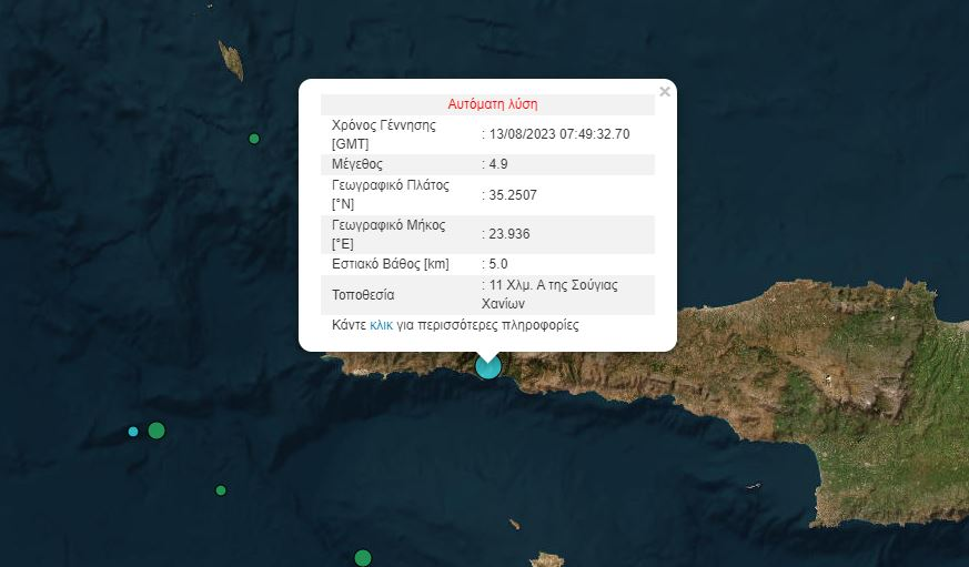 21 km ESE of Palaióchora, Greece / pop: 2,300 / local time: 10:49:32.9 2023-