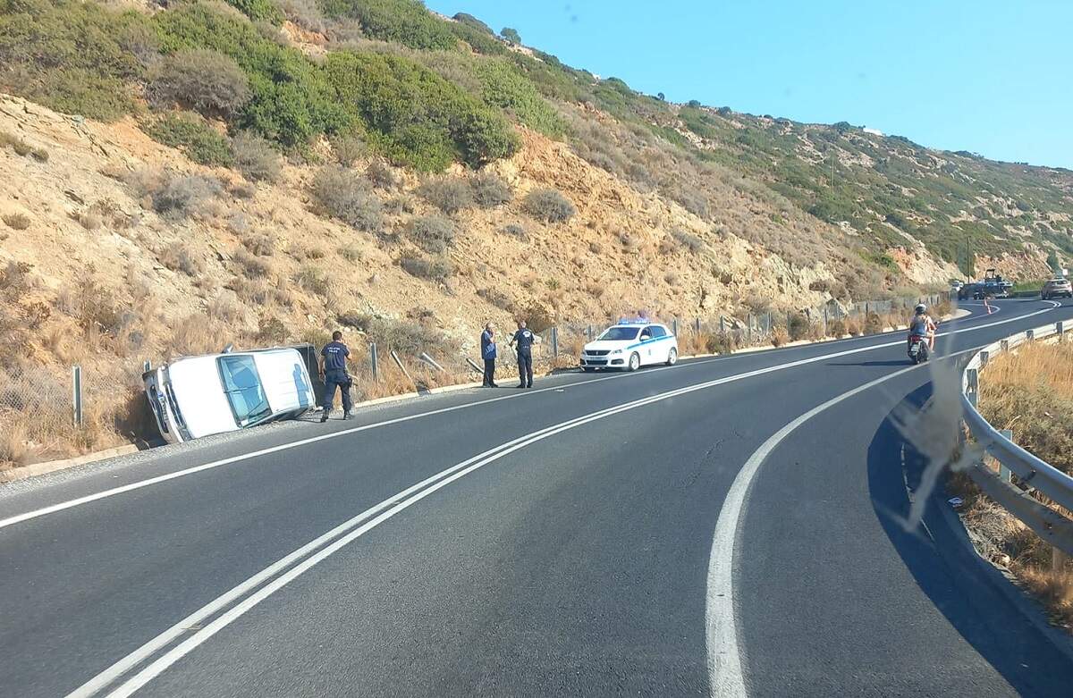 Τροχαίο σημειώθηκε το πρωί της Παρασκευής στον ΒΟΑΚ, στις στροφές μετά το Παλιόκαστρο προς τη Λυγαριά Ηρακλείου. Το όχημα με κατεύθυνση προς το Ηράκλειο ξέφυγε από το δρόμο και ανατράπηκε στο πλάι του οδοστρώματος, όπως φαίνεται στη φωτογραφία.