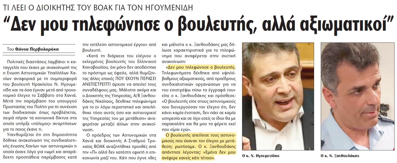 Η σύλληψη του αξιωματικού της ΕΛΑΣ, διοικητή Χανίων του ΒΟΑΚ γνωστού συνδικαλιστή, Ν. Ξανθουδάκη, που έχει άριστες σχέσεις με τη ΝΔ και την οικογένεια Μητσοτάκη, με προσημειωμένα χαρτονομίσματα που οδήγησαν σε δικογραφία με βαρύτατες κατηγορίες για εκβιασμούς και δωροληψίες, φέρνει και πάλι στη δημοσιότητα μια άκρως ζοφερή υπόθεση με στόχο τον τότε βουλευτή του ΣΥΡΙΖΑ-ΠΣ, Νίκο Ηγουμενίδη.