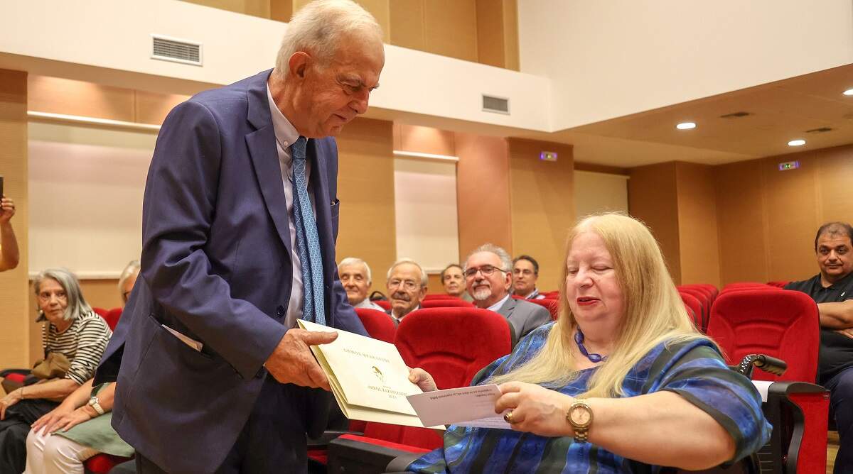 Στη συνέχεια ο ειδικός σύμβουλος του Δημάρχου Ηρακλείου και μέλος της Eπιτροπής του Βραβείου «Νίκος Καζαντζάκης» Κώστας Μπουρναζάκης, διάβασε εκ μέρους του Αρχιμουσικού Μίλτου Λογιάδη, ο οποίος δεν κατάφερε να παρευρεθεί στην Tελετή εξαιτίας εκτάκτου κωλύματος υγείας, ομιλία για τη ζωή, τις δημιουργίες και τα επιτεύγματα της κ. Πλάτωνος.