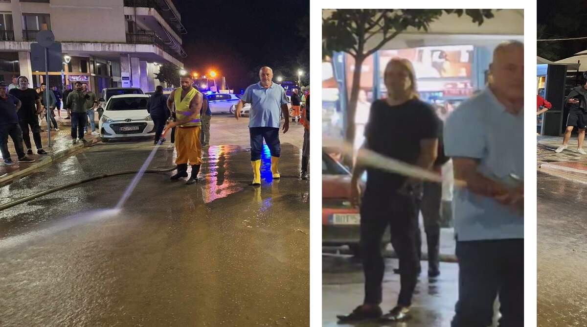 Την ώρα που ο καθαρισμός της πόλης γινόταν στην οδό Δημητριάδος, μπροστά από το εκλογικό κέντρο του Νίκου Παπαπέτρου, ο Αχιλλέας Μπέος άρπαξε το χέρι του καθαριστή του δρόμου και έστρεψε τη μάνικα στον δικηγόρο Γιώργο Ταταριώτη, που χτυπήθηκε με την δύναμη του νερού.