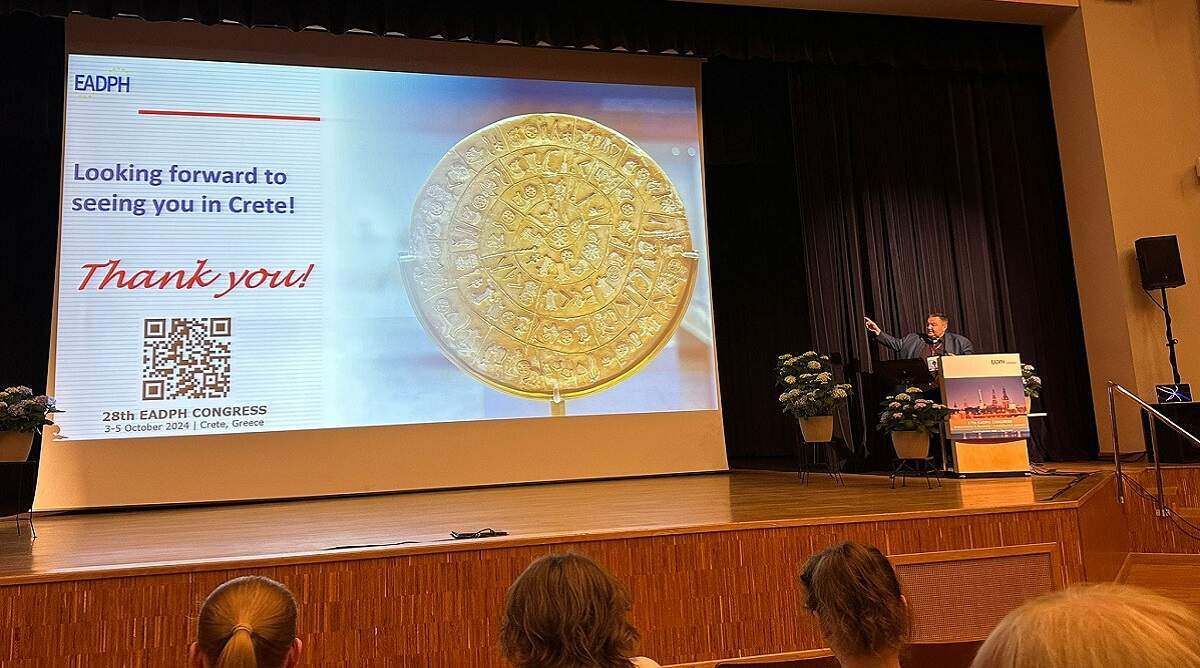 - Επισφραγίστηκε η ανάληψη από την Ελλάδα του επόμενου Συνεδρίου της EADPH, που θα πραγματοποιηθεί στο Ηράκλειο το διάστημα 3-5 Οκτωβρίου 2024. Μάλιστα το κοινό υποδέχθηκε την παρουσίαση του Συνεδρίου της EADPH στην Κρήτη με θερμά χειροκροτήματα! Ενθουσίασε μάλιστα τους συμμετέχοντες το μικρό αλλά εξαιρετικά συμβολικό δώρο με τον δίσκο της Φαιστού που τους έδωσαν οι Έλληνες εκπρόσωποι.