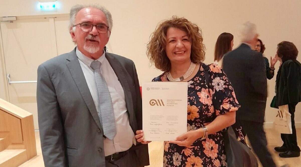 Την Παρασκευή 29/9/2023 πραγματοποιήθηκε από την Υπουργό Πολιτισμού και Αθλητισμού κα. Λίνα Μενδώνη, η επίσημη απονομή του σήματος «Αναγνωρισμένο Μουσείο» στο Μουσείο Νίκου Καζαντζάκη. Η τελετή απονομής πραγματοποιήθηκε στο πλαίσιο της 3ης Ενημερωτικής Συνάντησης για την Αναγνώριση και Πιστοποίηση των Ελληνικών Μουσείων με τίτλο “Συμπεριληπτικά, ελκυστικά και βιώσιμα μουσεία” που έλαβε χώρα στην Εθνική Πινακοθήκη – Μουσείο Αλεξάνδρου Σούτσου.
