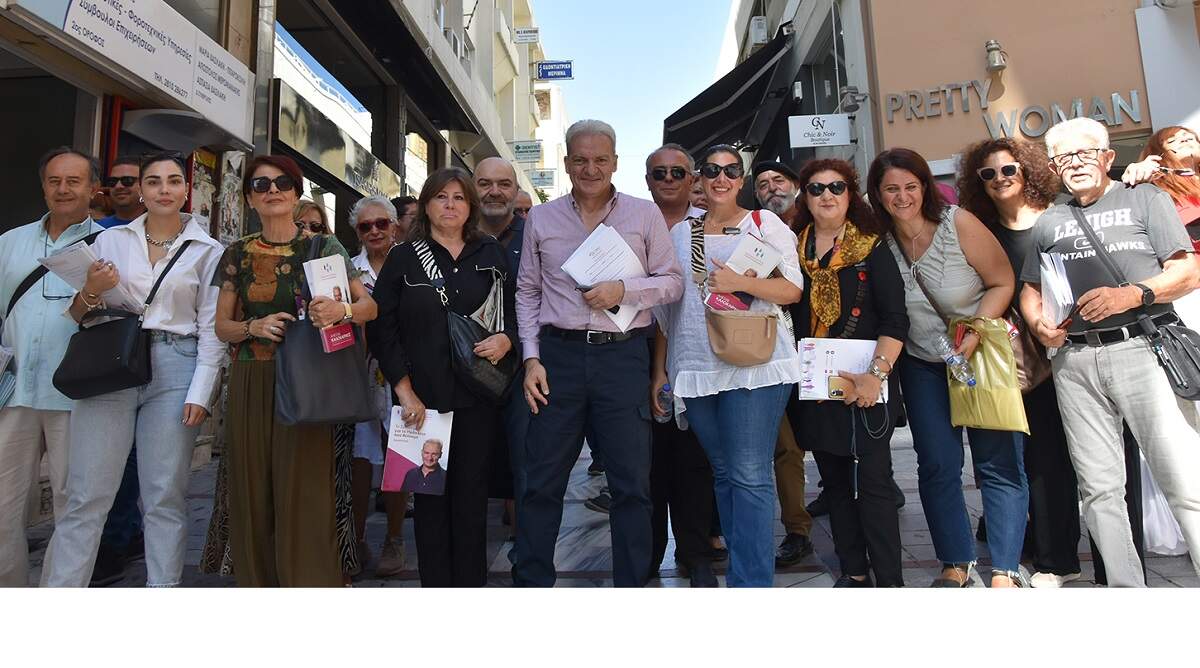 Στην οδό Δαιδάλου, έναν από τους πιο εμπορικούς δρόμους του Ηρακλείου, βρέθηκε ο υποψήφιος δήμαρχος Ηρακλείου και επικεφαλής της παράταξης «Δικαίωμα στην Πόλη» Αλέξης Καλοκαιρινός μαζί με υποψήφιους συμβούλους του συνδυασμού, συνεχίζοντας όπως και σε άλλα σημεία της πόλης να συζητά με καταστηματάρχες και πολίτες για τη βελτίωση της καθημερινότητάς αλλά και να ανταλλάσσει απόψεις και προτάσεις για το μέλλον του Ηρακλείου.